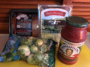 • Pork chops, rav’s with marina and roasted Brussels sprouts