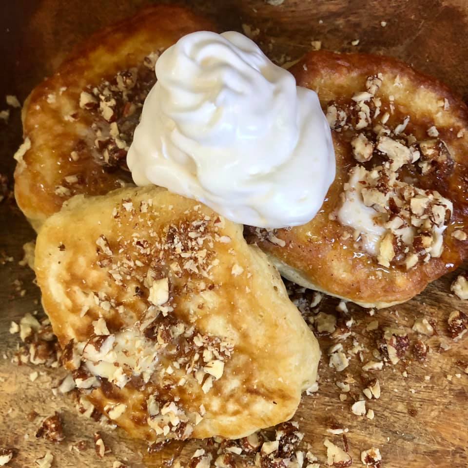 I now bake weekly on the boat and even have a starter going at my daughter’s house so I can bake with the Grands, too. (My daughter believes that I have personally contributed to the flour shortage. She used to go through a bag of flour over the course of a several months and now I bring a fresh bag every few weeks.) I’ve graduated to making loaves with herbs and spices, rolls, English muffins, and biscuits. Hating to throw away anything thanks to the influence of my thrifty Nana, I’ve found that I can make crackers and pancakes with the starter discard. My learning curve has produced some delish results (and some carb pounds) and others that go straight into the trash (Waxed paper sticks to the bottom of bread and crackers; use parchment paper instead!)