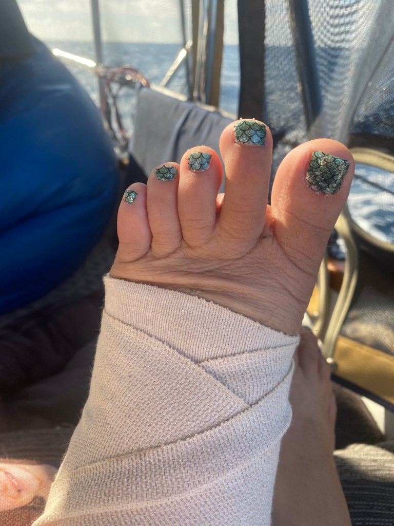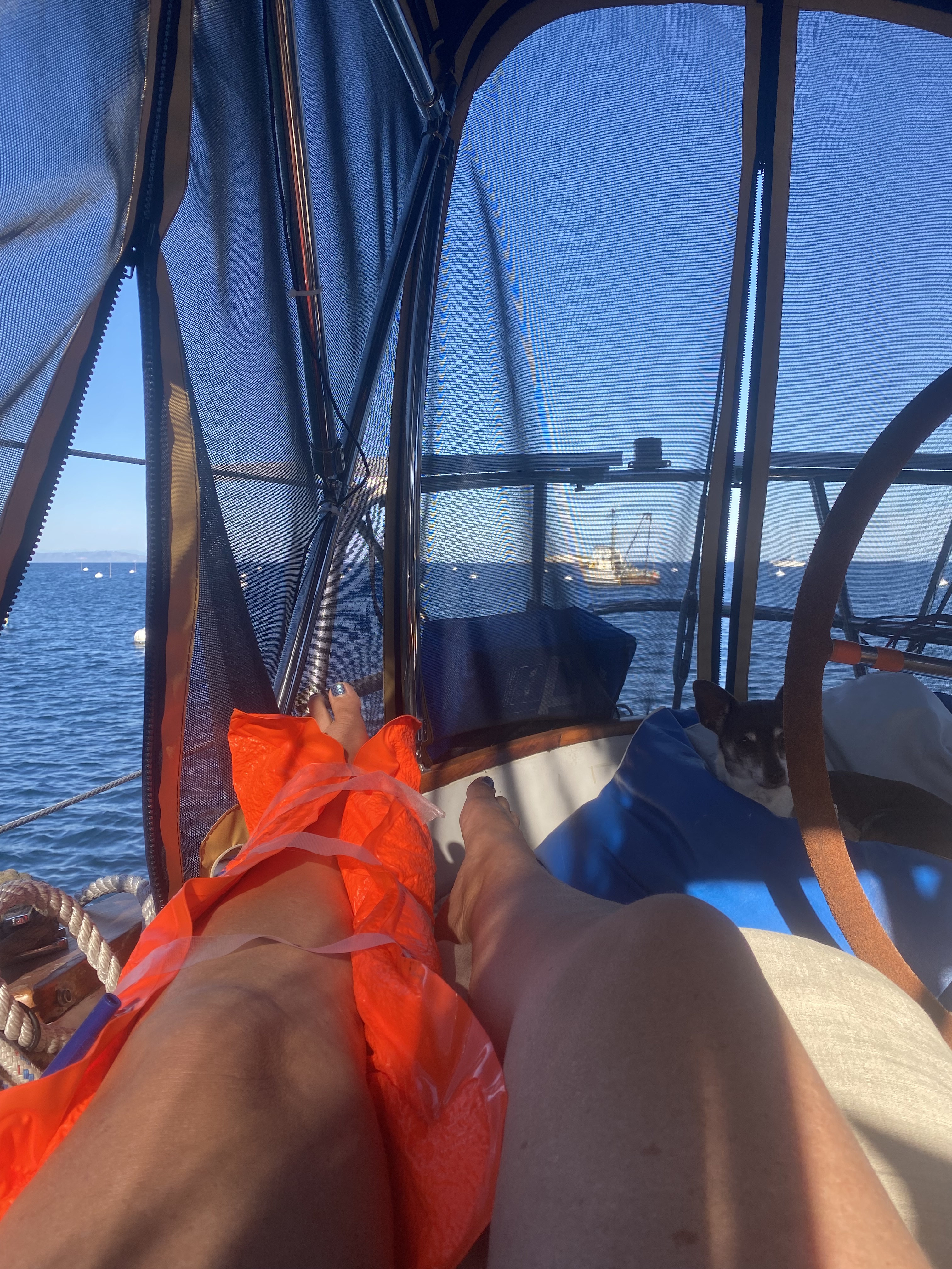 With my ankle stabilized, we decided to motor to Dana Point, where we were able to secure a slip for a quick overnight, then on to San Diego where we knew we’d easily find care. We had to do day trips as navigating at night in an unknown port is never a good idea, even with all crew fully able-bodied. At this point, I could put zero weight on the foot without excruciating pain. I hopped or crawled through the boat, grateful for the many handholds. Hubby single-handed us off the mooring balls, into and out of the Dana Point berth, and then finally to our guest slip at Southwestern Yacht Club. There, the staff lent us a wheelchair and I was off to a San Diego Kaiser Urgent Care via the kind shuttle of our cousins, who live in SoCal.