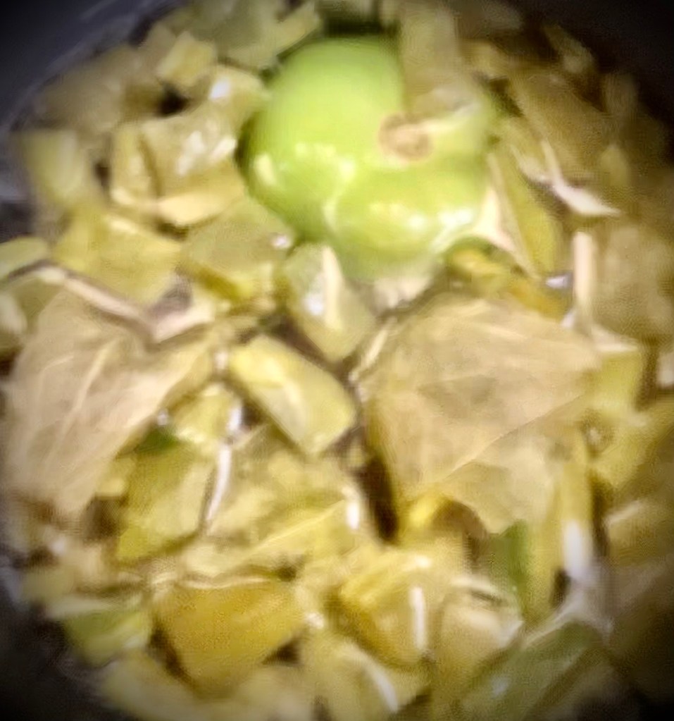 - Dice the cooled tomatillo (It might be a bit mushy, and that’s okay).