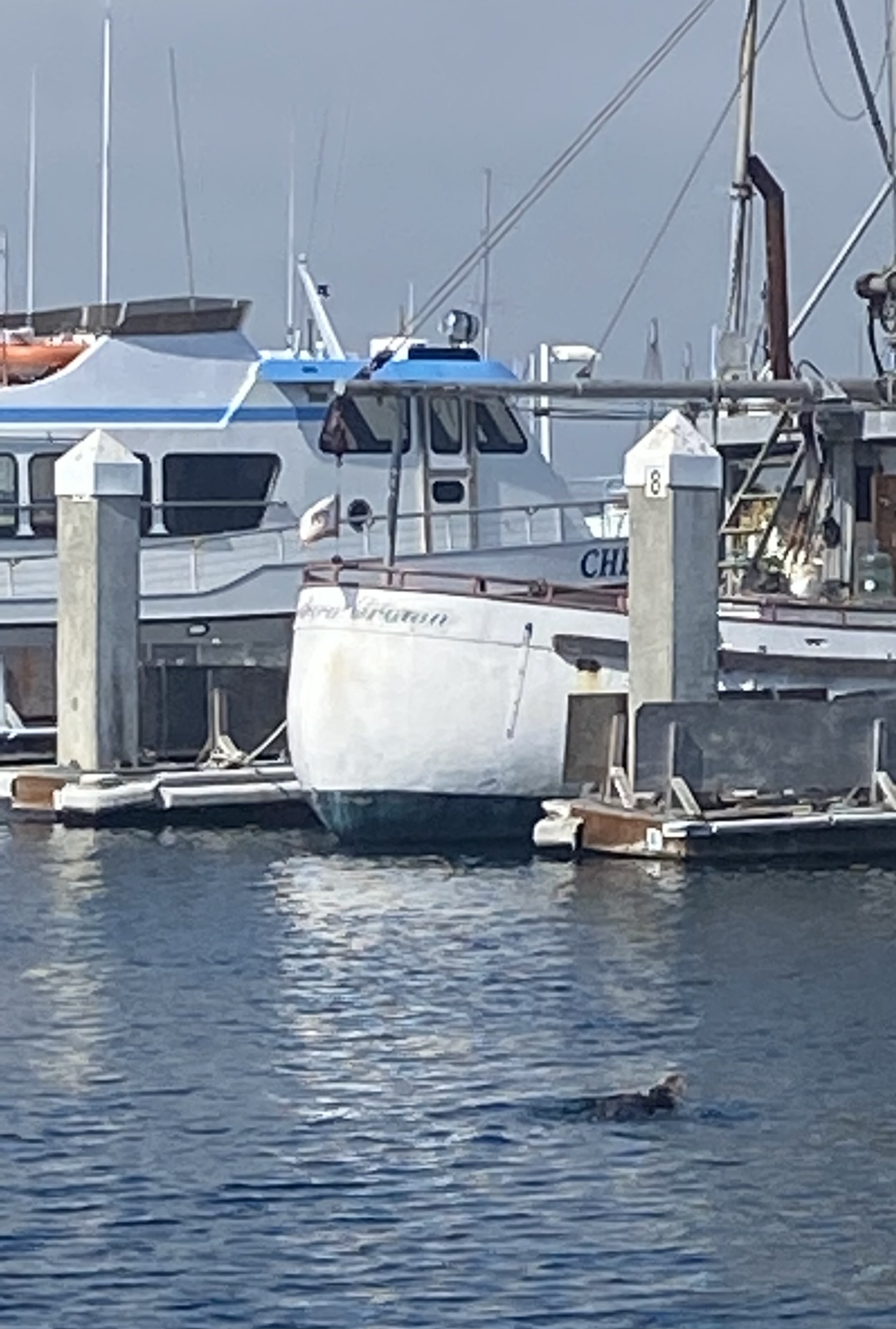 After 10 hours scooting along the coast we turned into the Monterey Municipal Marina. The short trip from the ocean into the harbor is filled with sea lions and pelicans waiting for the fishing boats to come to port and hoping for a handout from their daily catch. The marina is an eclectic mix of sailboats, small power boats and many commercial vessels. The wharfs and surrounding piers are filled with visitors and activity.