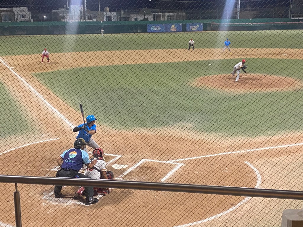 The game was very casual, resembling a minor league game in the states, but the players were energetic and the crowd was enthusiastic. The crack of bats connecting with balls and guys kicking up the dirt as they sped around the bases and sliding into home plate were just like baseball games back home and such fun to experience. The music organizer was awesome and we were treated to a wide range of tunes such as Guns ‘n’ Roses “Wild Child of Mine,” Bruno Mars “Uptown Funk,” and other American poplar hits interspersed with Mexican music between players coming to bat.
